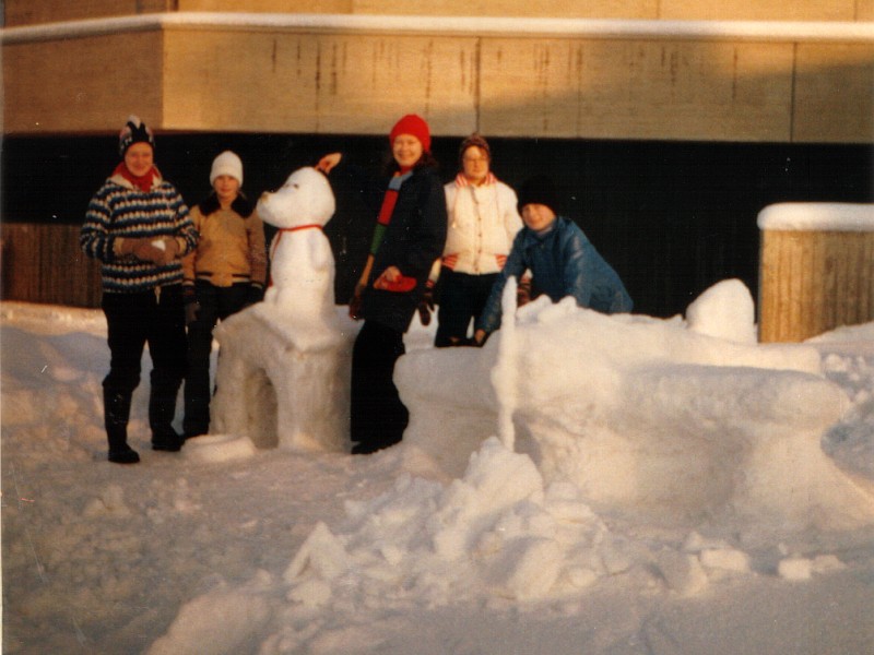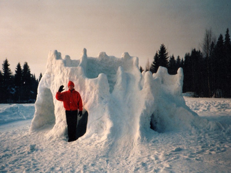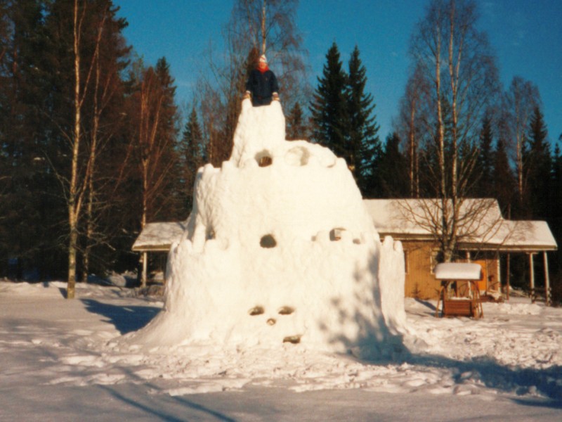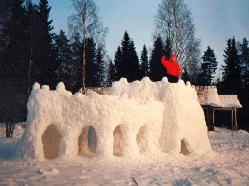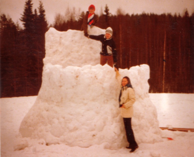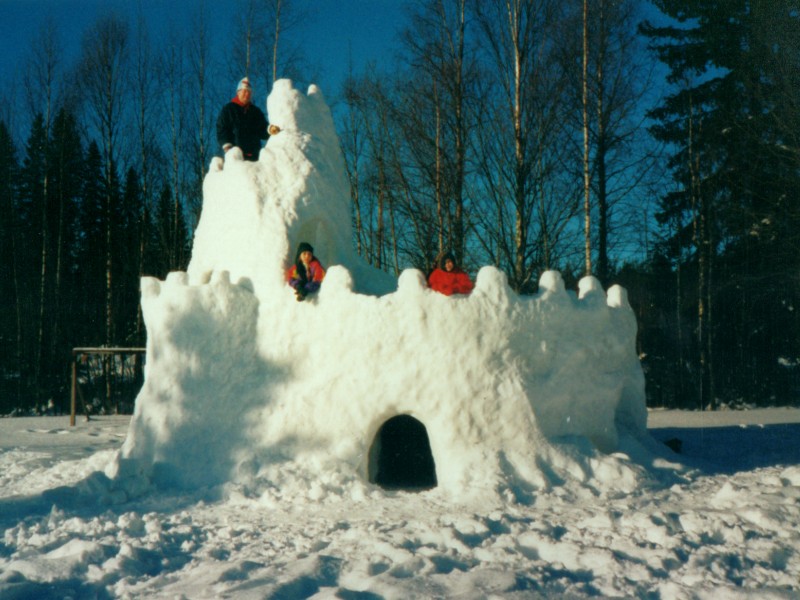 Well, not exactly a snow castle, but something to do with snow. :-) This was our entry (called "Snoopy and his plane") in the national snow sculpture competition we took part in 1980. We placed 6th! Our entry number was 19, so there were at least 19 participants. Pretty good, considering it was a nationwide event, and we only heard about the competition and decided to participate a few days before the actual competition! My father took the picture, and the rest of the team consisted of my sister, mother, cousin, and cousin's friend.